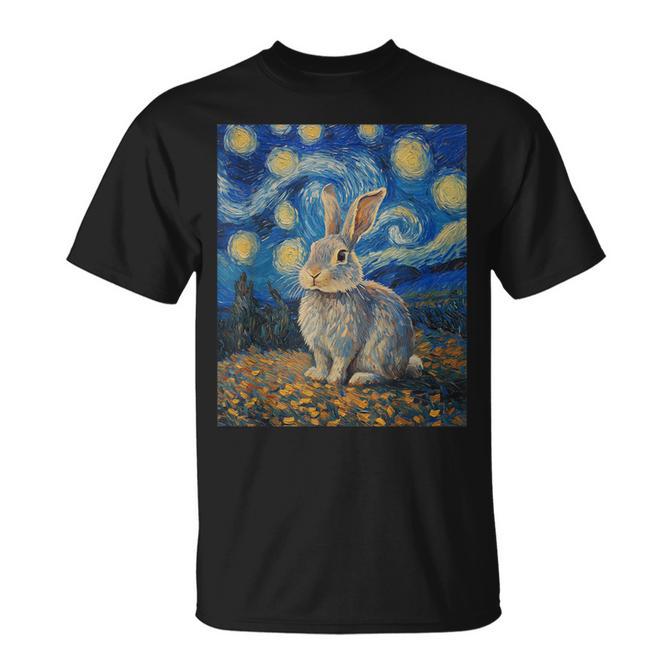 Cute Bunny Rabbit Van Gogh Style Starry Night T-Shirt