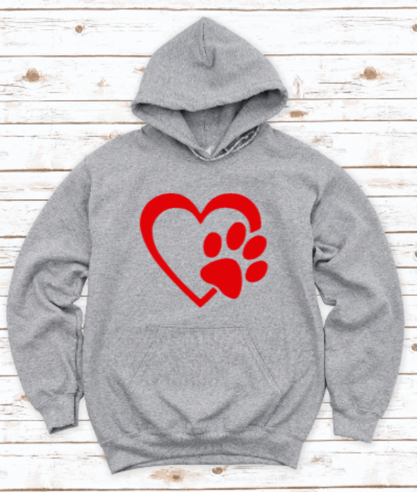 Dog Paw Heart Gray Unisex Hoodie Sweatshirt