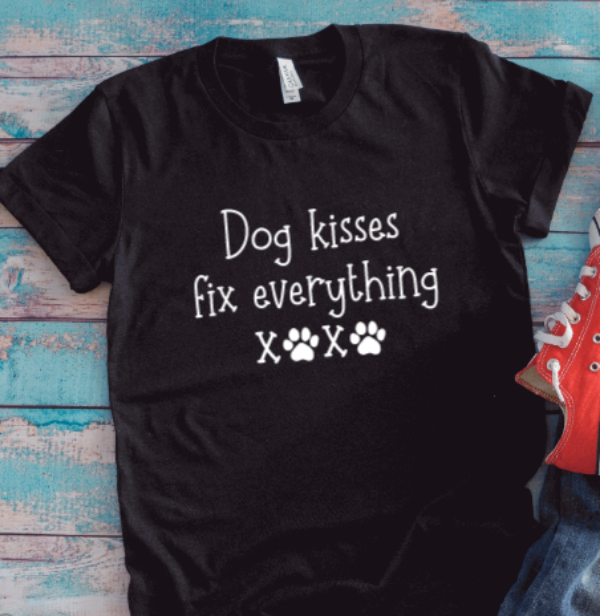 Dog Kisses Fix Everything, Unisex Black Short Sleeve T-shirt