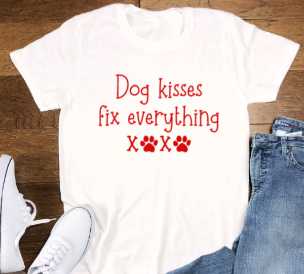 Dog Kisses Fix Everything, White, Short Sleeve Unisex T-shirt