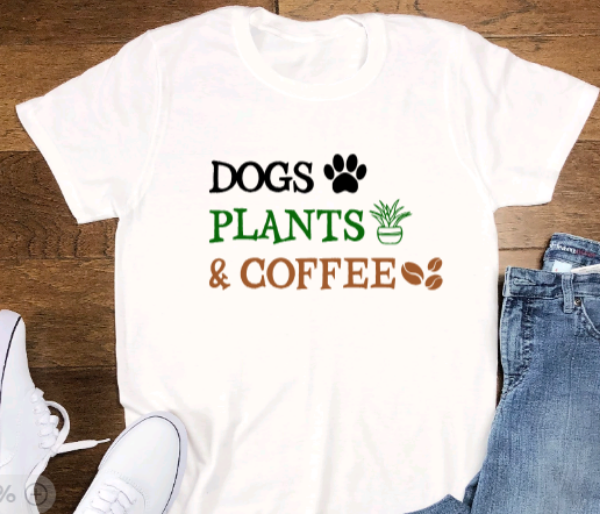 Dogs, Plants, & Coffee, Short Sleeve Unisex T-shirt
