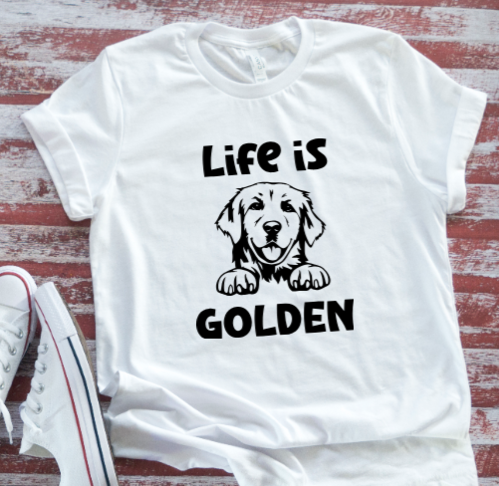 Life is Golden, Retriever, Unisex White Short Sleeve Men's and Women's T-shirt
