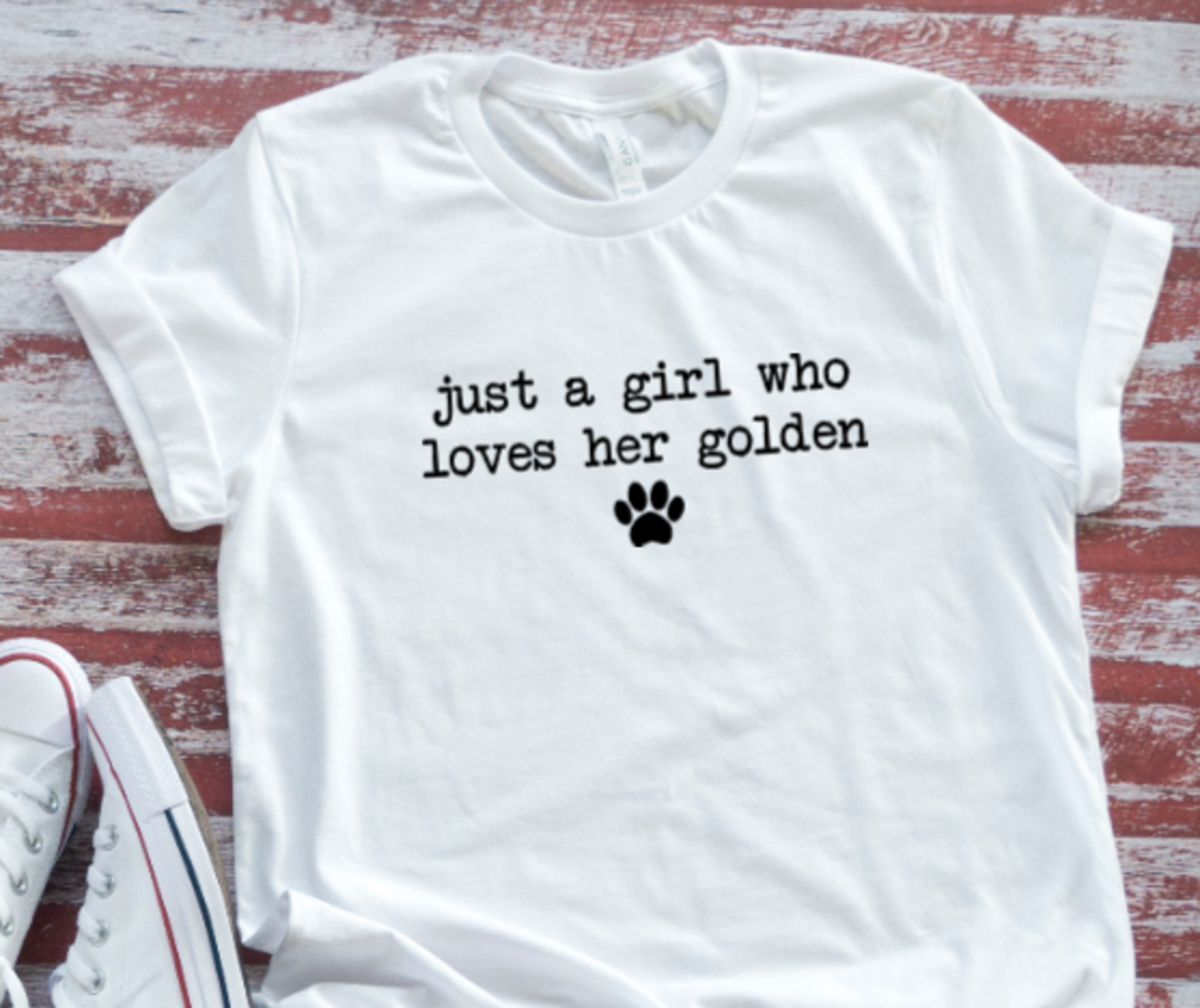 Just a Girl Who Loves Her Golden, Retriever, Unisex White Short Sleeve Men's and Women's T-shirt