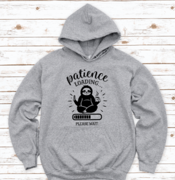 Patience Loading, Please Wait, Sloth, Gray Unisex Hoodie Sweatshirt