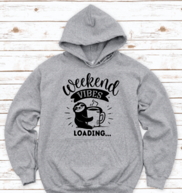 Weekend Vibes Loading, Sloth, Gray Unisex Hoodie Sweatshirt
