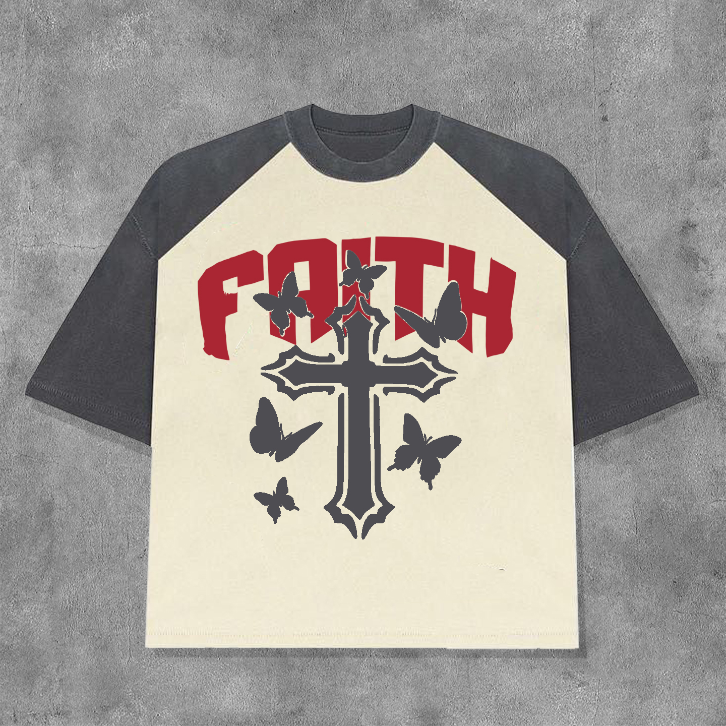 Faith Cross Butterfly Contrast Color Print Short Sleeve T-Shirt
