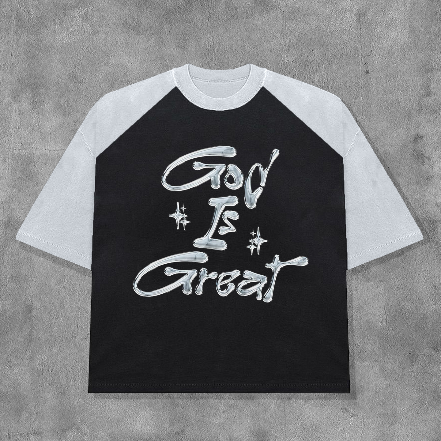 God Is Great Contrast Color Print Short Sleeve T-Shirt