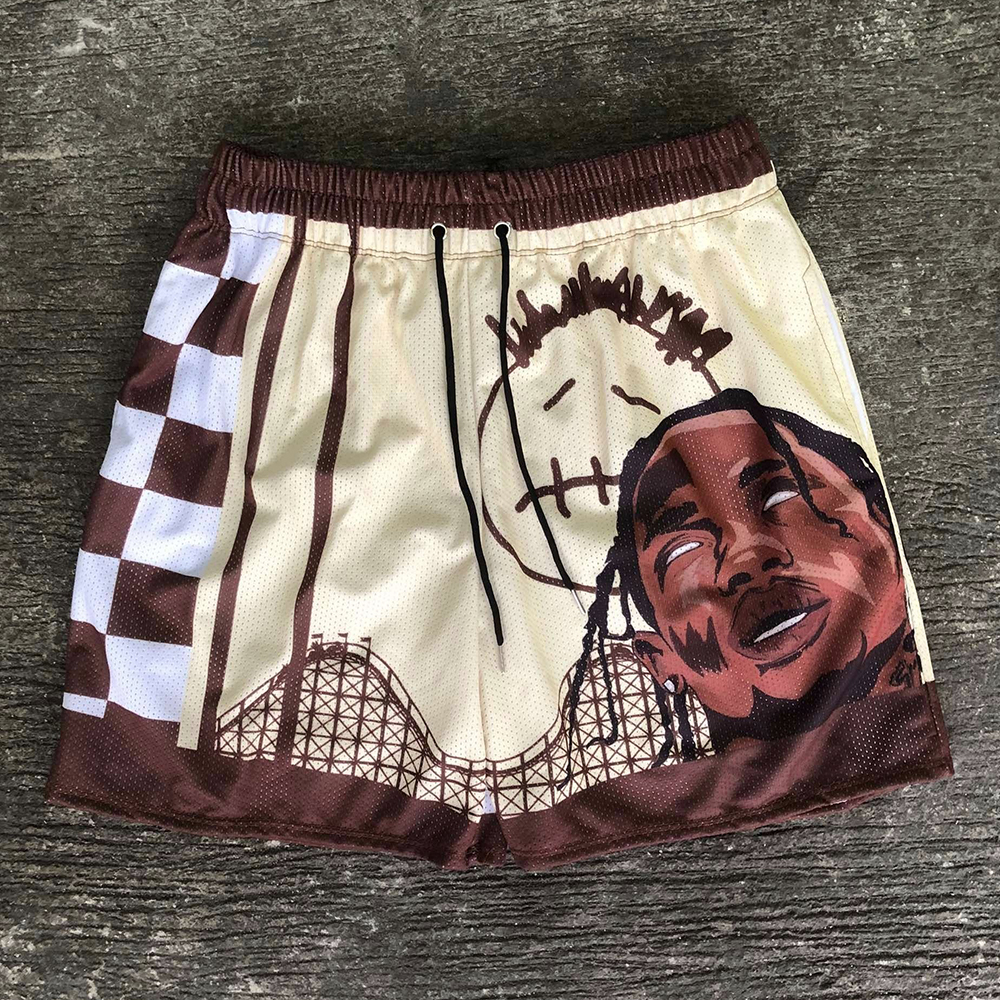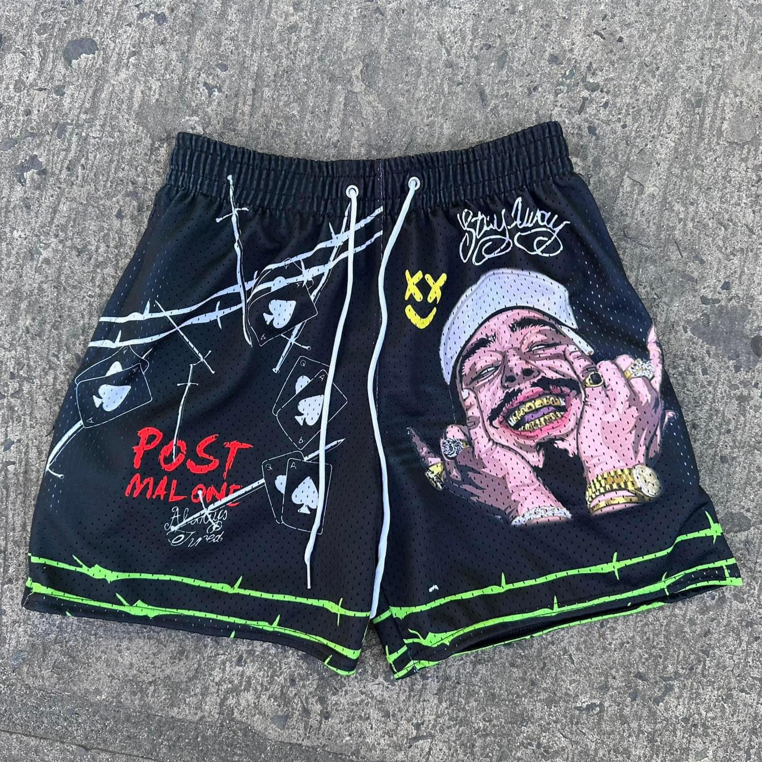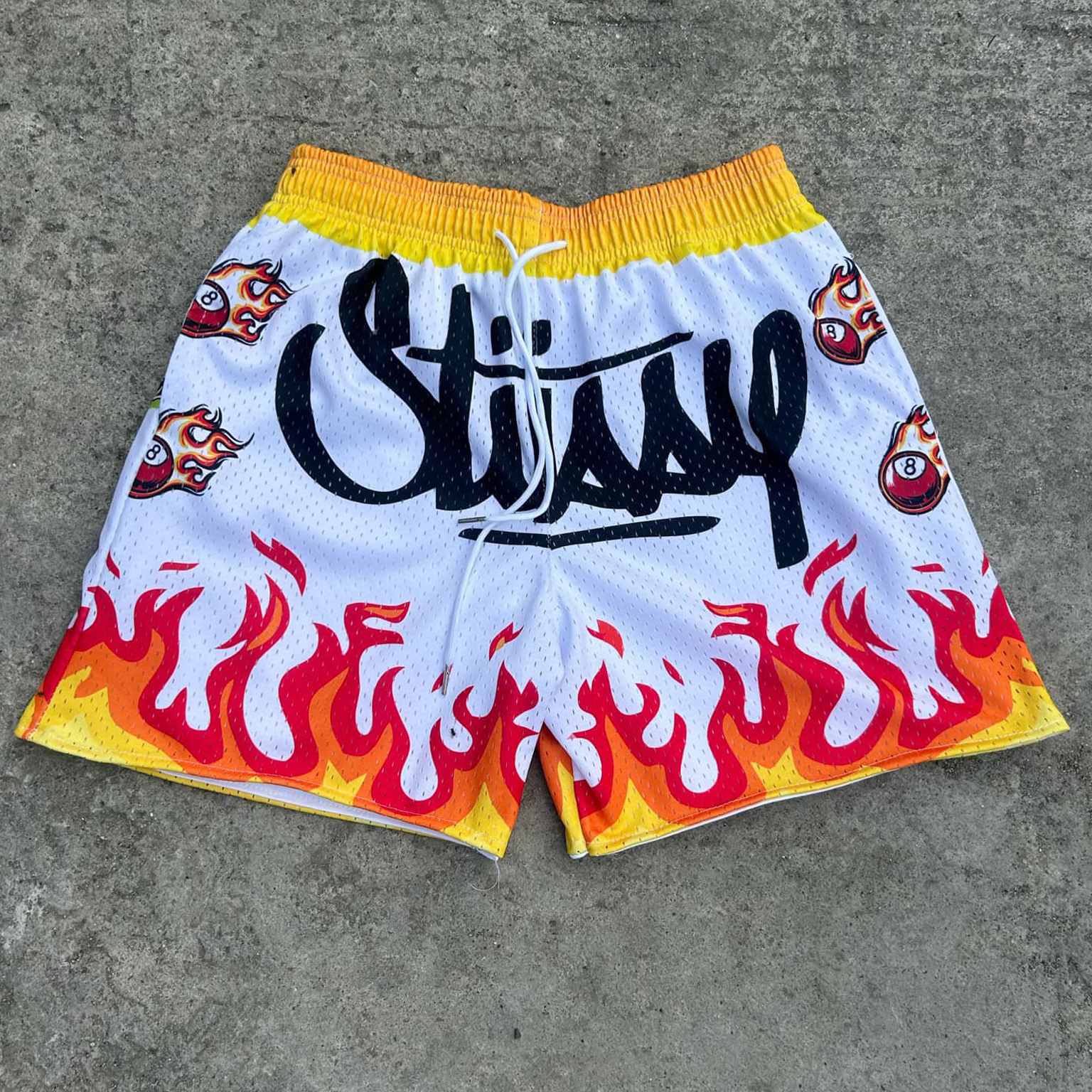 Lucky Star Casual Street Retro Skateboard Mesh Shorts