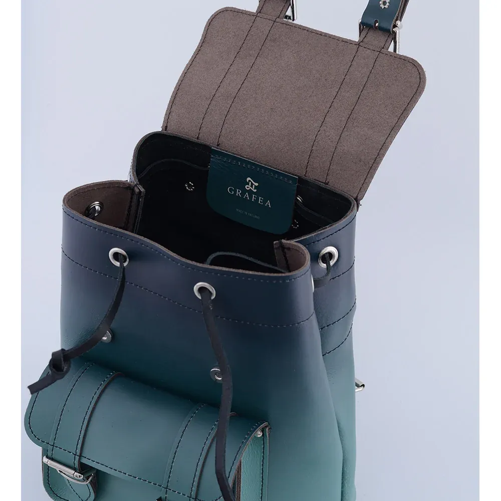 • Colour: green• 100% Leather• Small Size Backpack• One Front Pocket• Magnetic Front Buckles• Two adjustable shoulder straps• Made in England