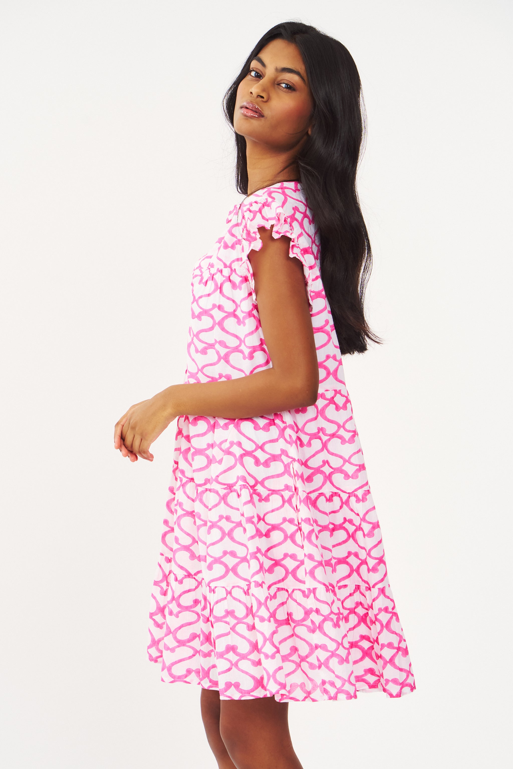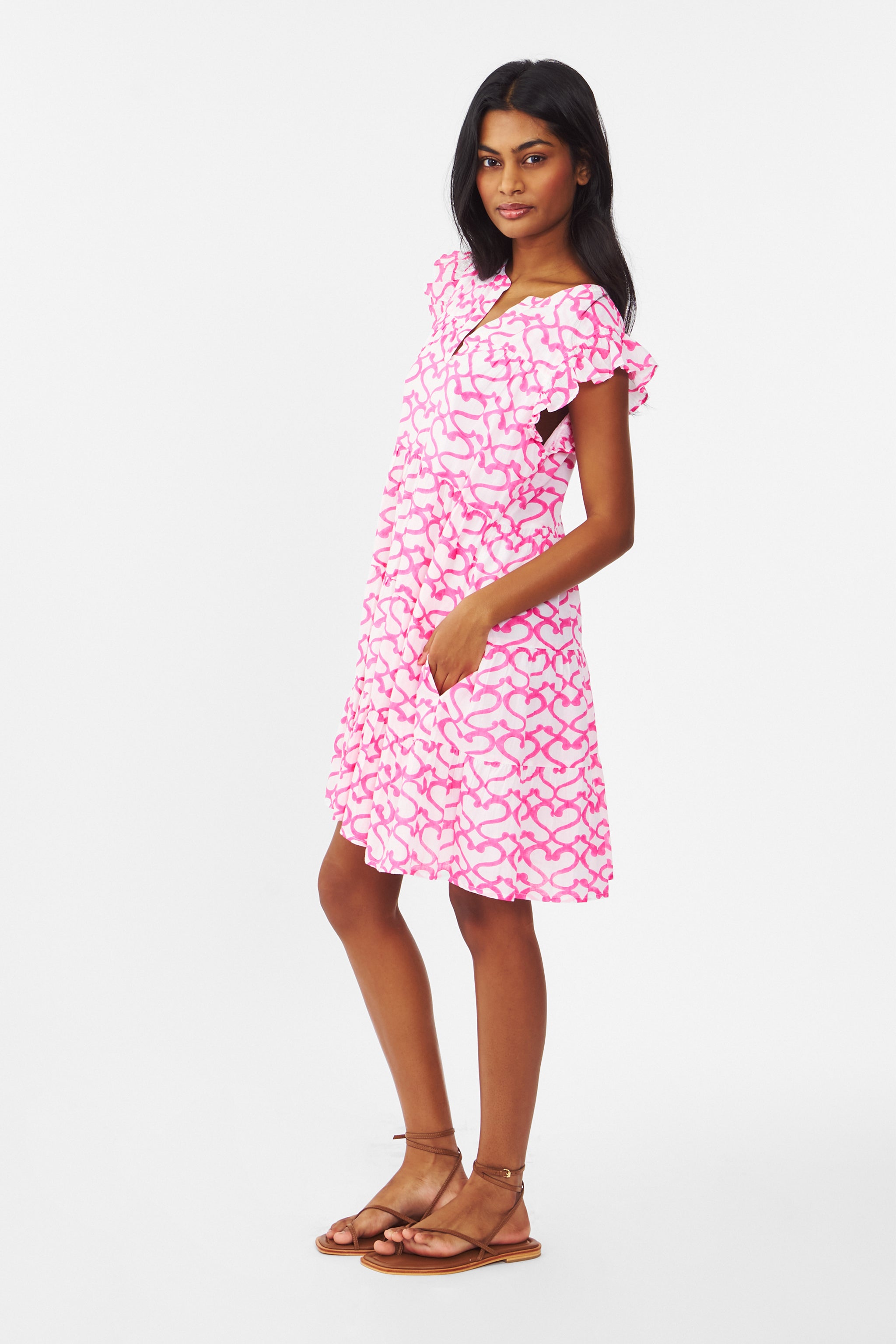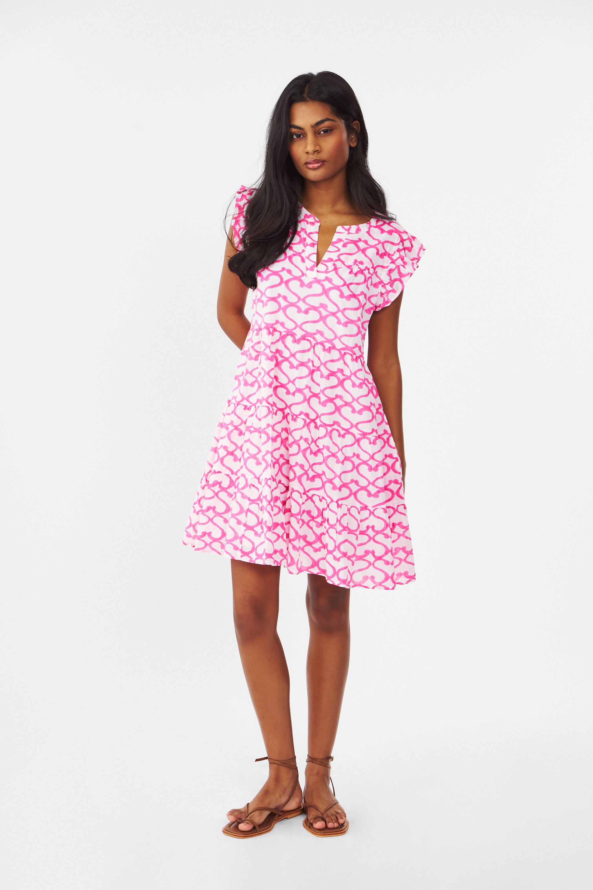 Our bestselling short-sleeved dress is an absolute essential, especially in lightweight cotton voile. A pop of pink is both sophisticated and fun — just how we like it!