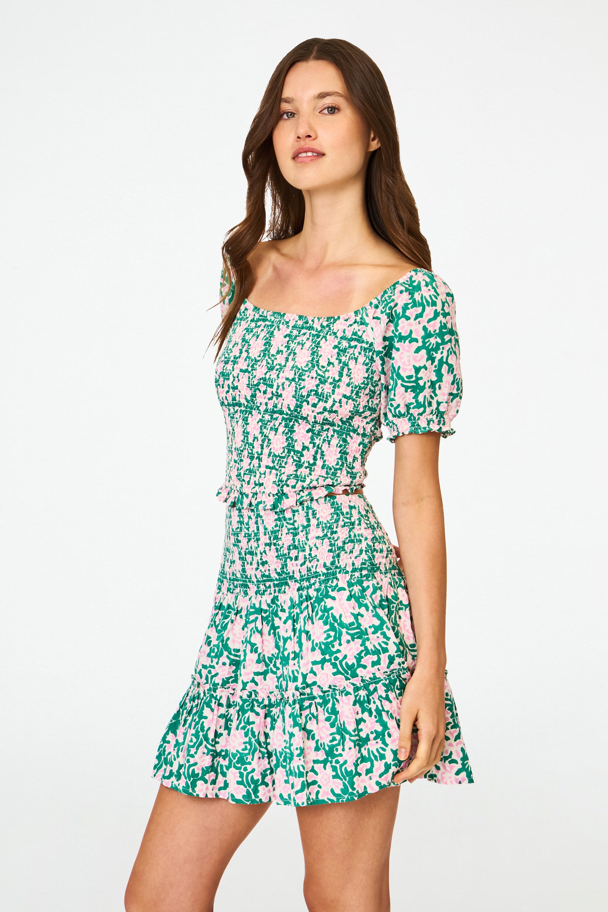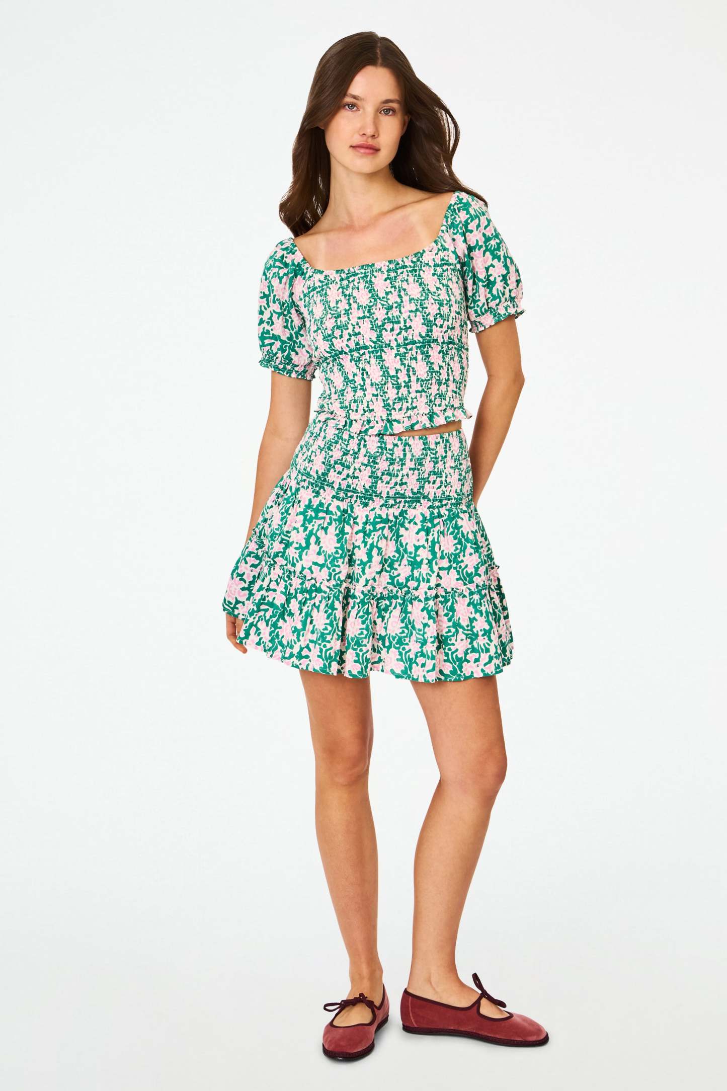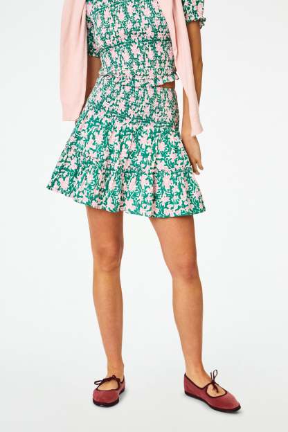 Get your prep on in the Riki Skirt, a pull-on tiered mini in luxe satin batiste cotton and the vibrant, romantic pink-and-green Endah Floral print. It can be styled in so many ways, making it a wardrobe essential you'll be reaching for time and time again. Lined.