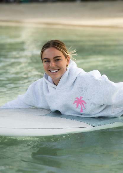 The PPP palm embroidered above our hearts is a symbol of unity within the Pink Palm Puff community, reminding us all of the love we share.