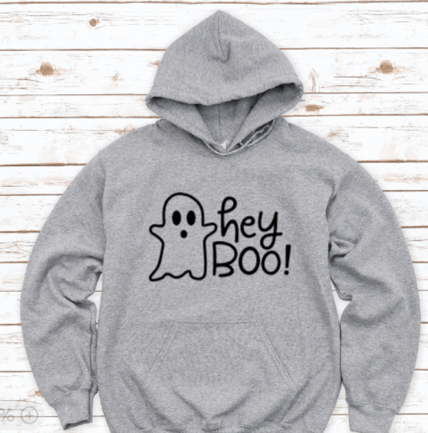 Hey Boo, Halloween, Gray Unisex Hoodie Sweatshirt
