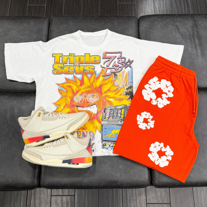 Hip-hop street retro T-shirt shorts two-piece set