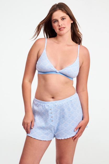Pretty in pastels. The York Bralette is a soft, sweet pale blue bralette in our beyond-soft cotton-stretch pointelle. Slim straps, an adjustable hook band, and triangle cups give light support and coverage.