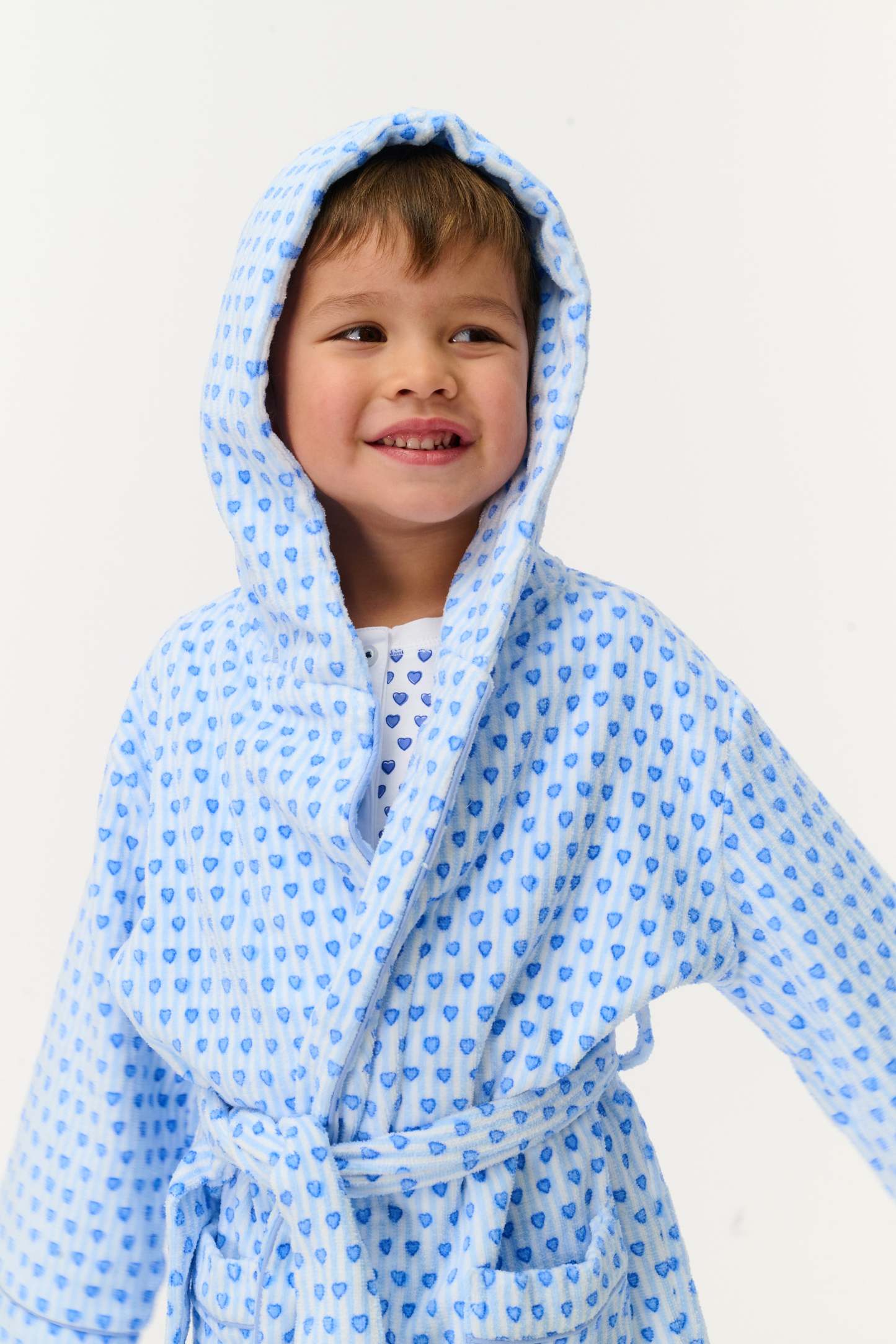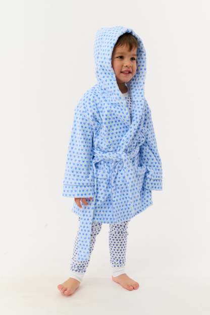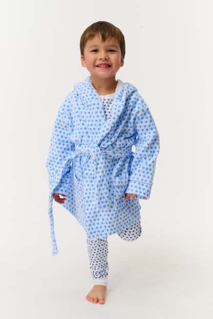 Made for post-bath snuggling or cozy weekend mornings, our Kids Max Robe is a traditional terry style in a blue Lovely Stripe print. Match Mom or Dad in the adult Max Robe!