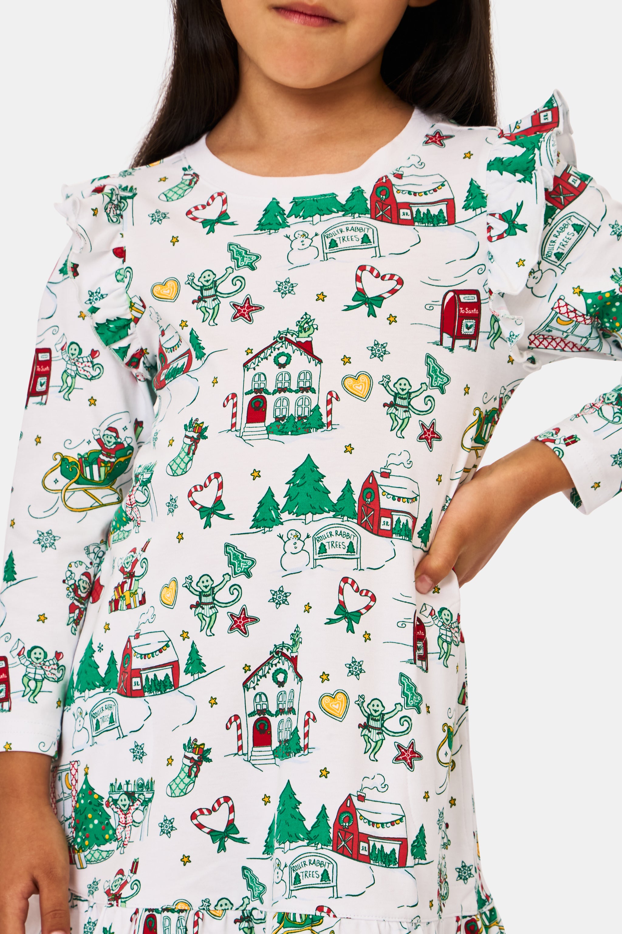 Let holiday magic twirl to life in our Kids Isa Dress. Crafted from the softest Pima cotton, this charming dress features a whimsical snowy village print filled with festive cheer. Perfect for tree-trimming, family photos, and every cookie-baking moment in between. Cozy, comfy, and made for merry memories.