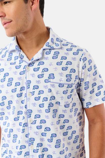 Our original Moby print is featured on our favorite polo set for any man in your life! Featuring shorts and a matching short-sleeve button-up top, this Pima cotton pajama set is made for a breezy feel on those warmer nights.