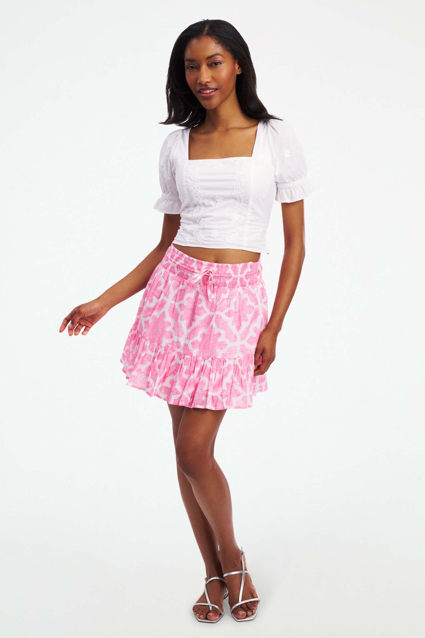 The Peyton Skirt is one of those "throw it on and go" pieces you can wear anywhere: the pool, the patio, lunch with friends, you name it. It slips on easily with a comfy smocked waistband and cheeky ruffled hem.