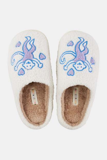 They're basically guaranteed to make you happy. The Blue Monkey Slippers are an adorable shearling slipper slide featuring our signature monkey print.
