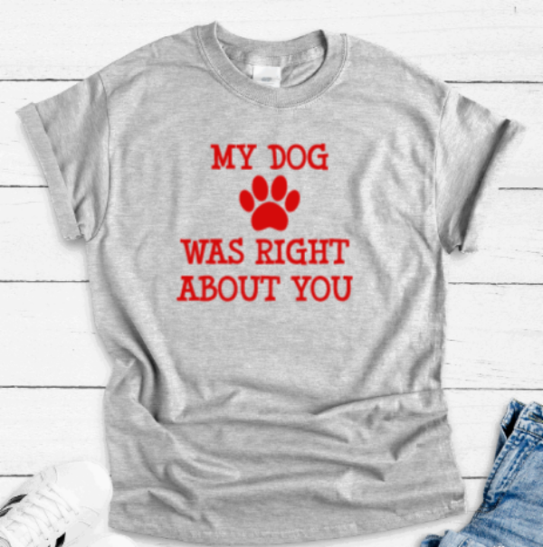 My Dog Was Right About You, Gray Short Sleeve Unisex T-shirt