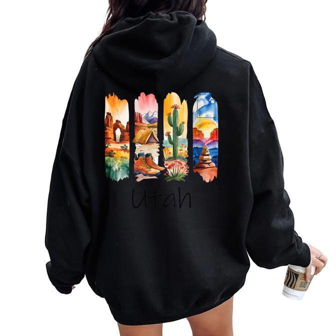 Utah Brushstroke Arches National Park Hiking Boots Cactus Women Oversized Hoodie Back Print