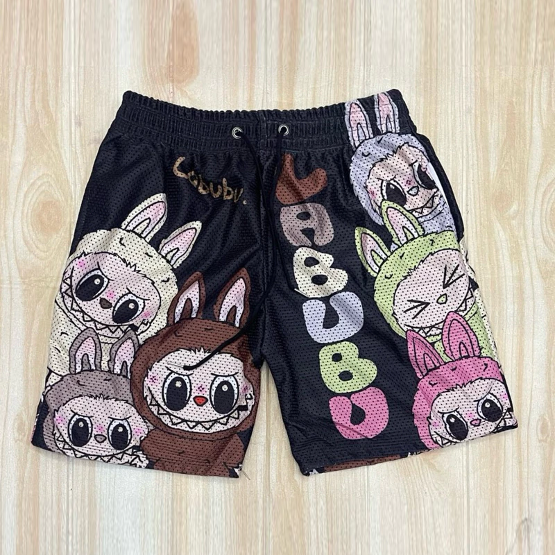 Preppy labubu print mesh shorts