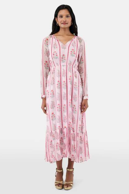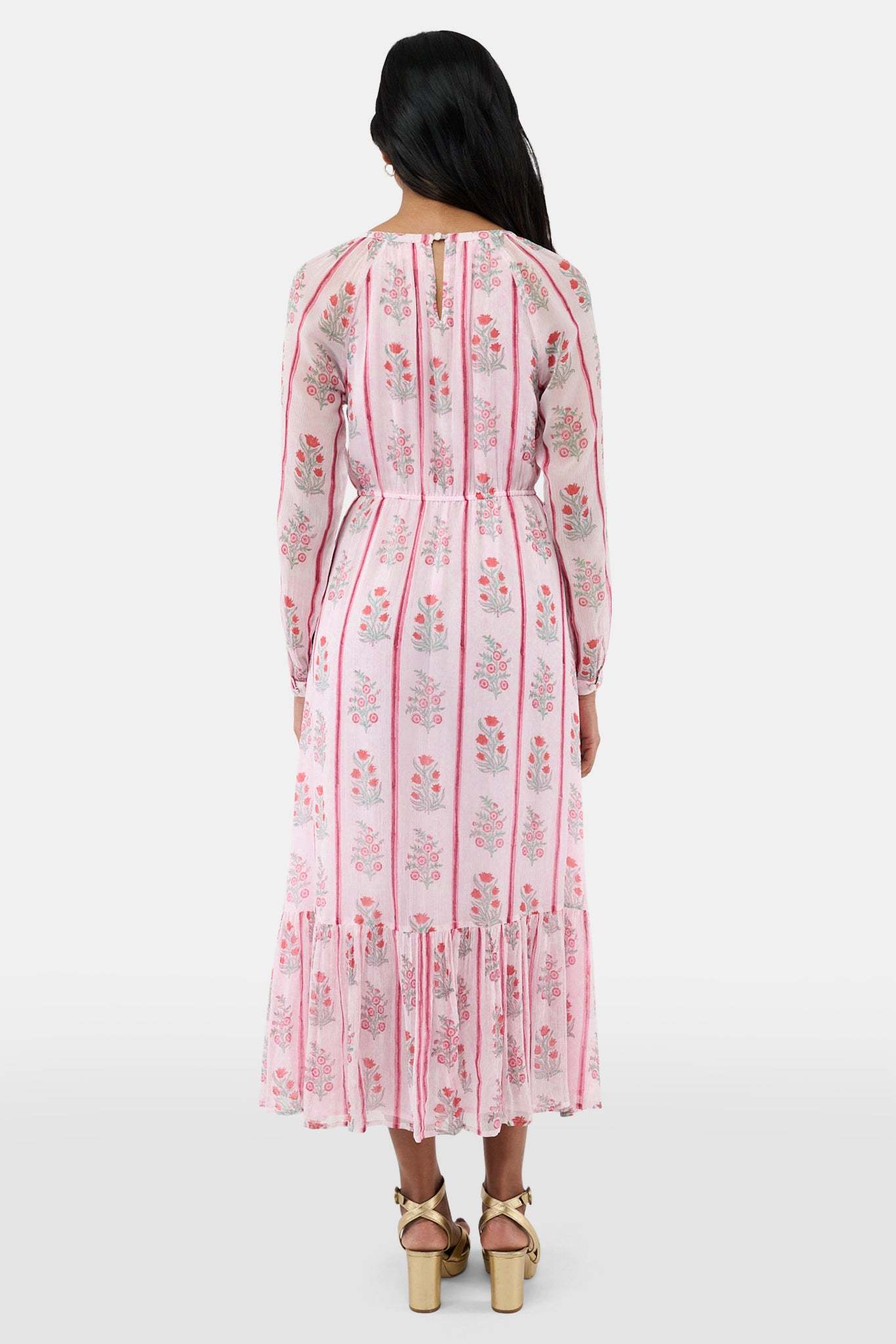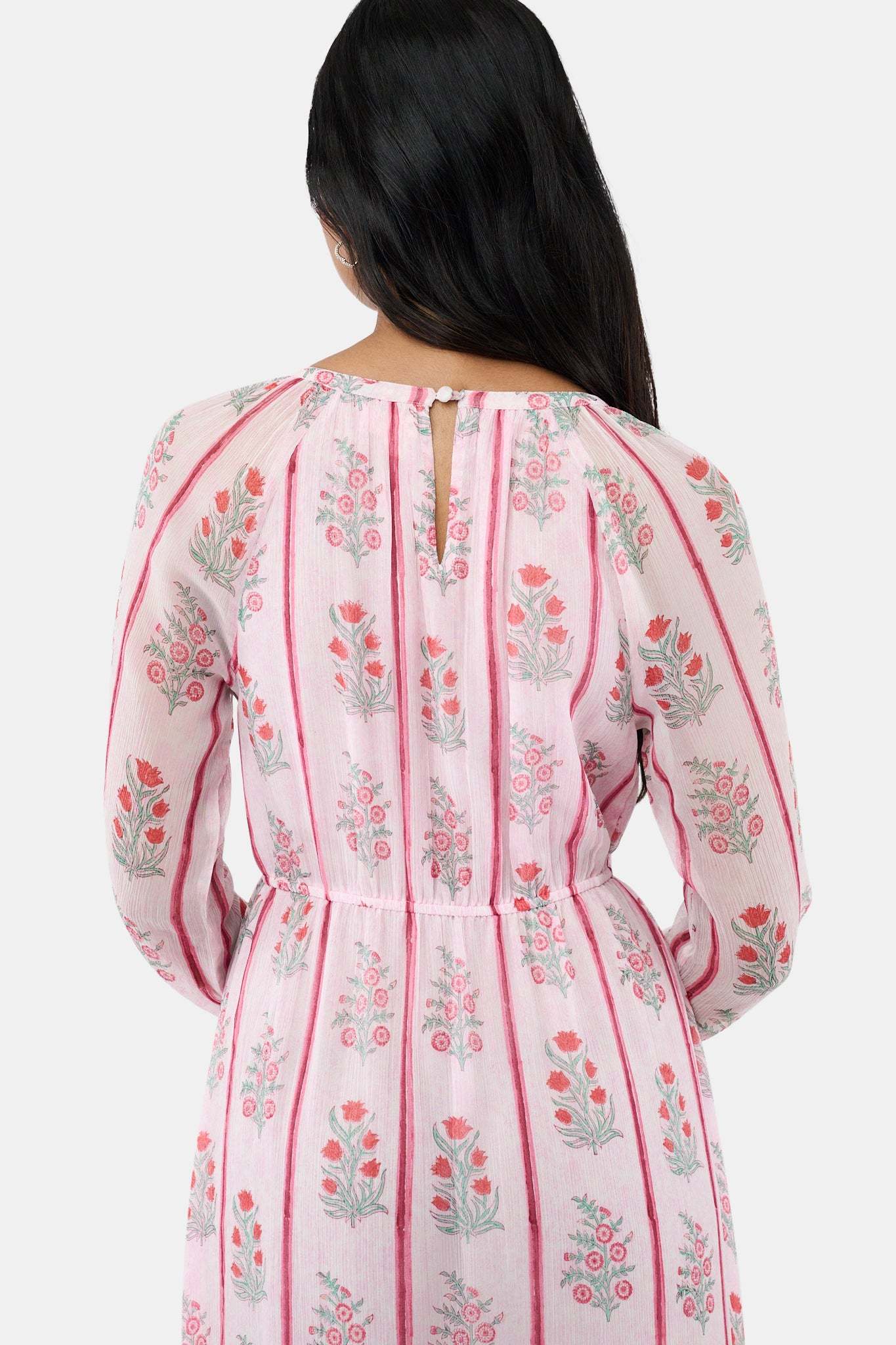 Meet your new favorite fall-to-holiday dress, the Aubrey. This full-length maxi in crinkle chiffon is graceful and glamorous; the Rose Ribbon print is begging for your favorite red lip!