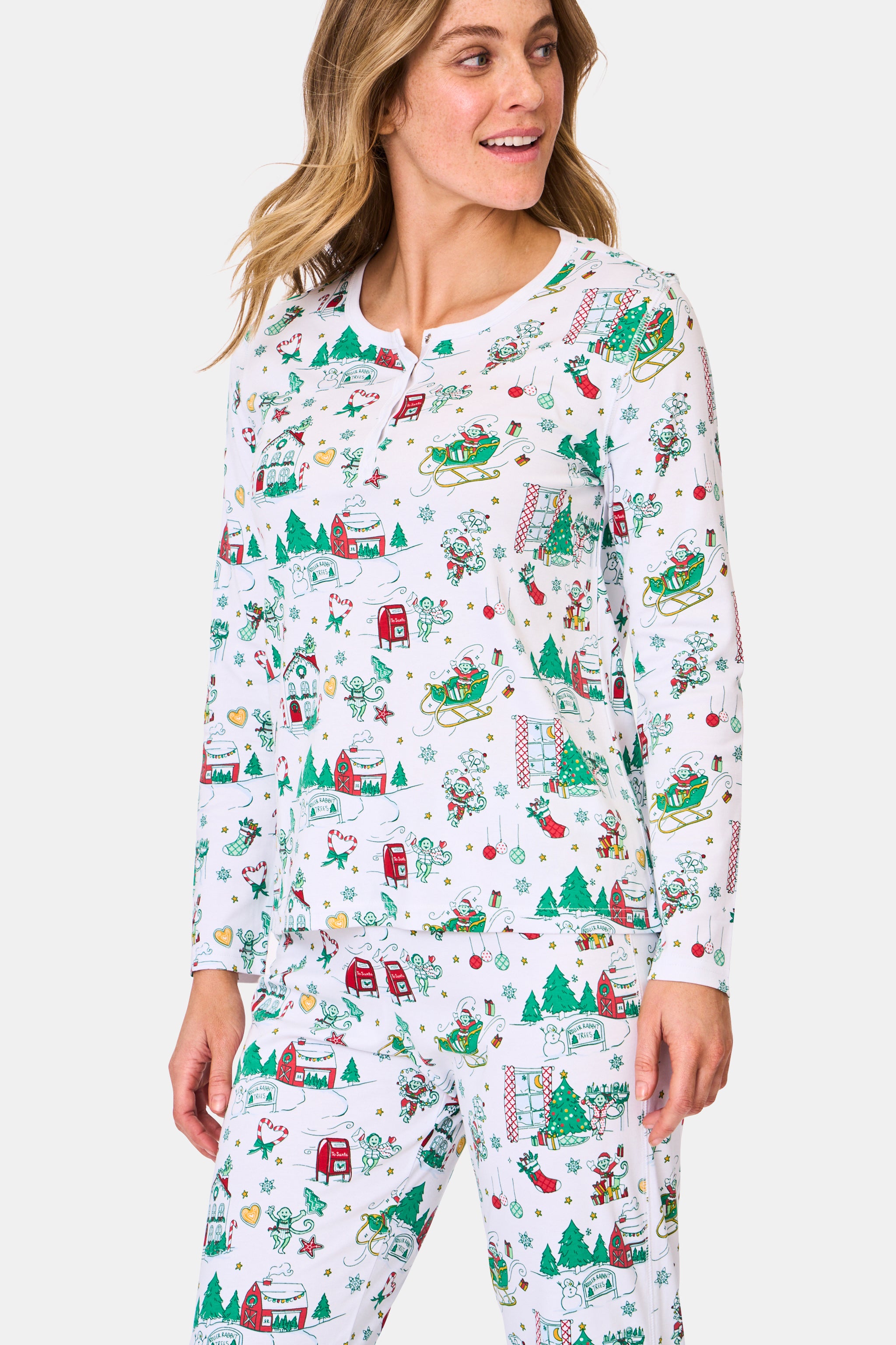 Step into the season’s magic with our Women’s Pajama. Made from buttery-soft Pima cotton, this festive set wraps you in comfort and cheer with its whimsical winter village print. Perfect for fireside mornings, and making memories that feel as cozy as they look.