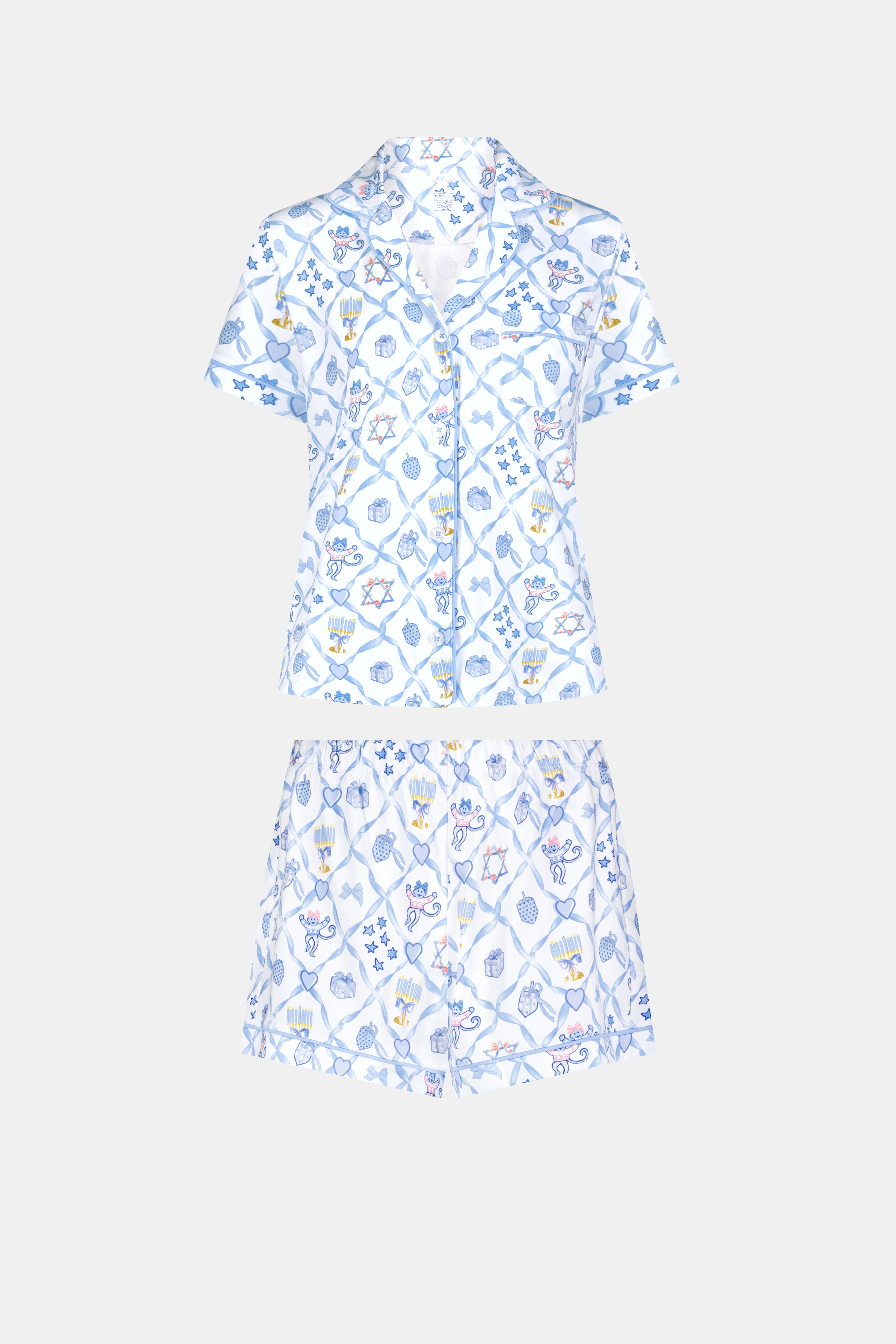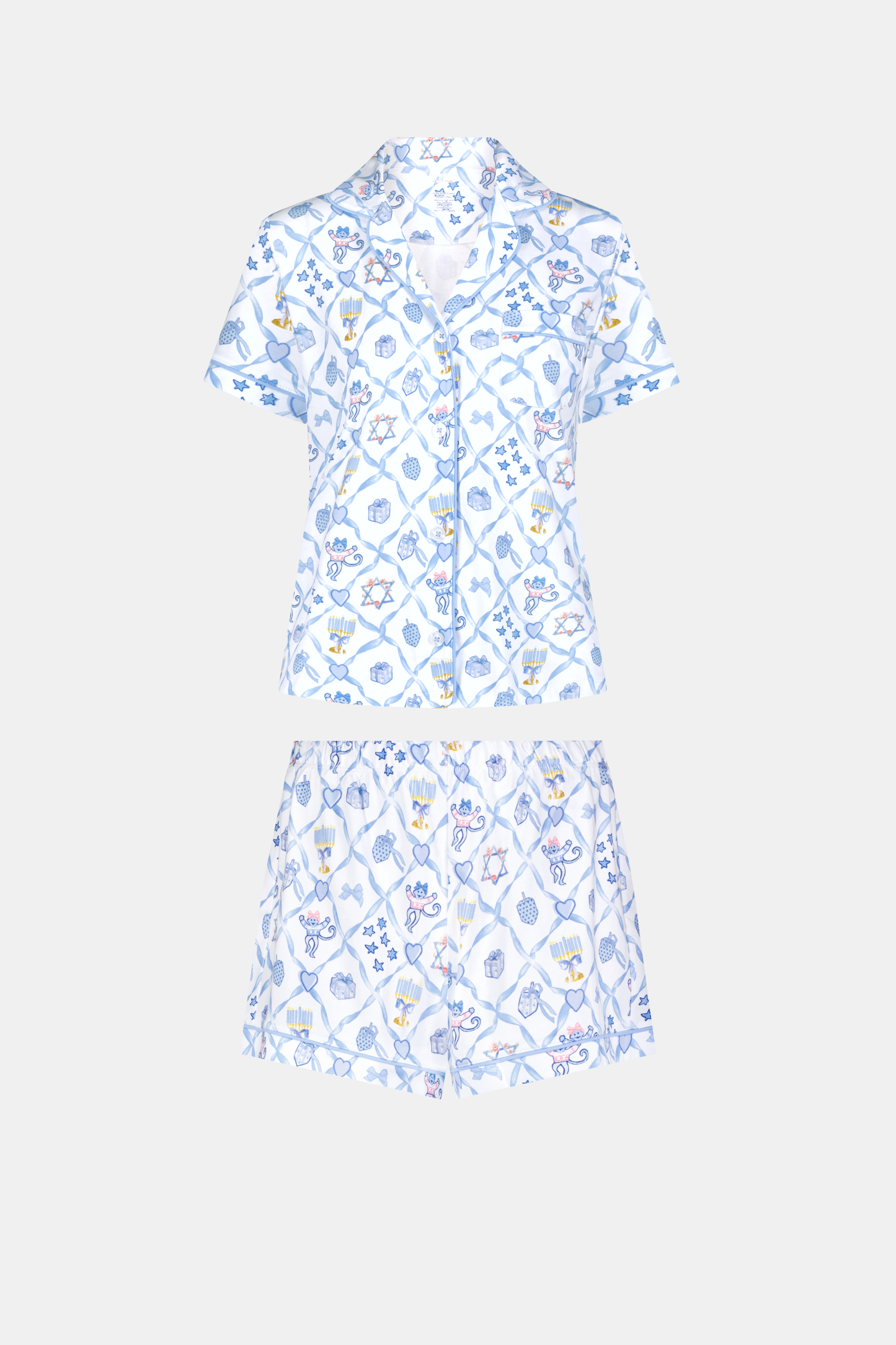 Celebrate Hanukkah with Roller Rabbit x LoveShackFancy and our bestselling Women's Polo Pajamas. The enchanting pastel print and adorable shortie style make them the perfect PJs for eight nights and beyond.