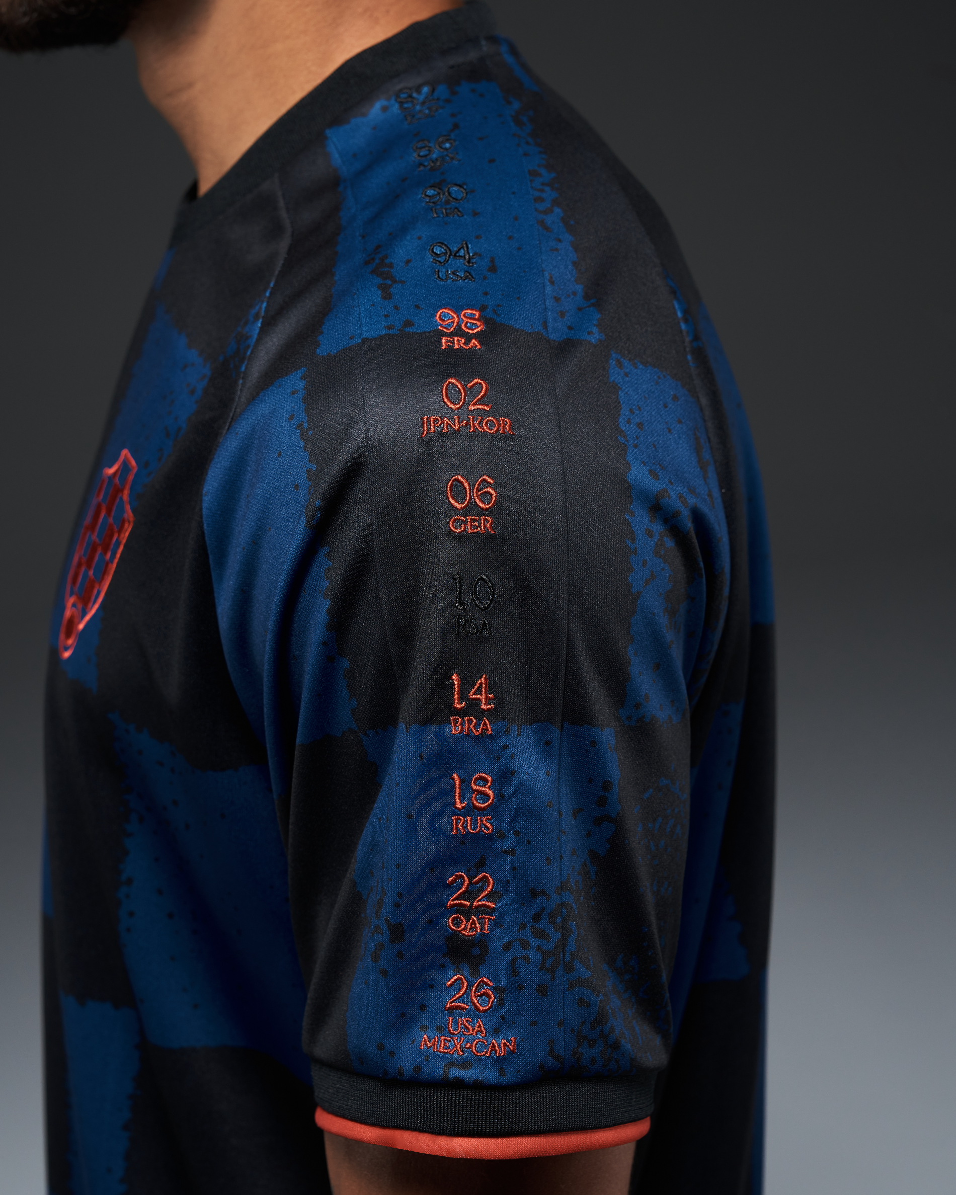 - Every World Cup Croatia entered, embroidered along the sleeves.