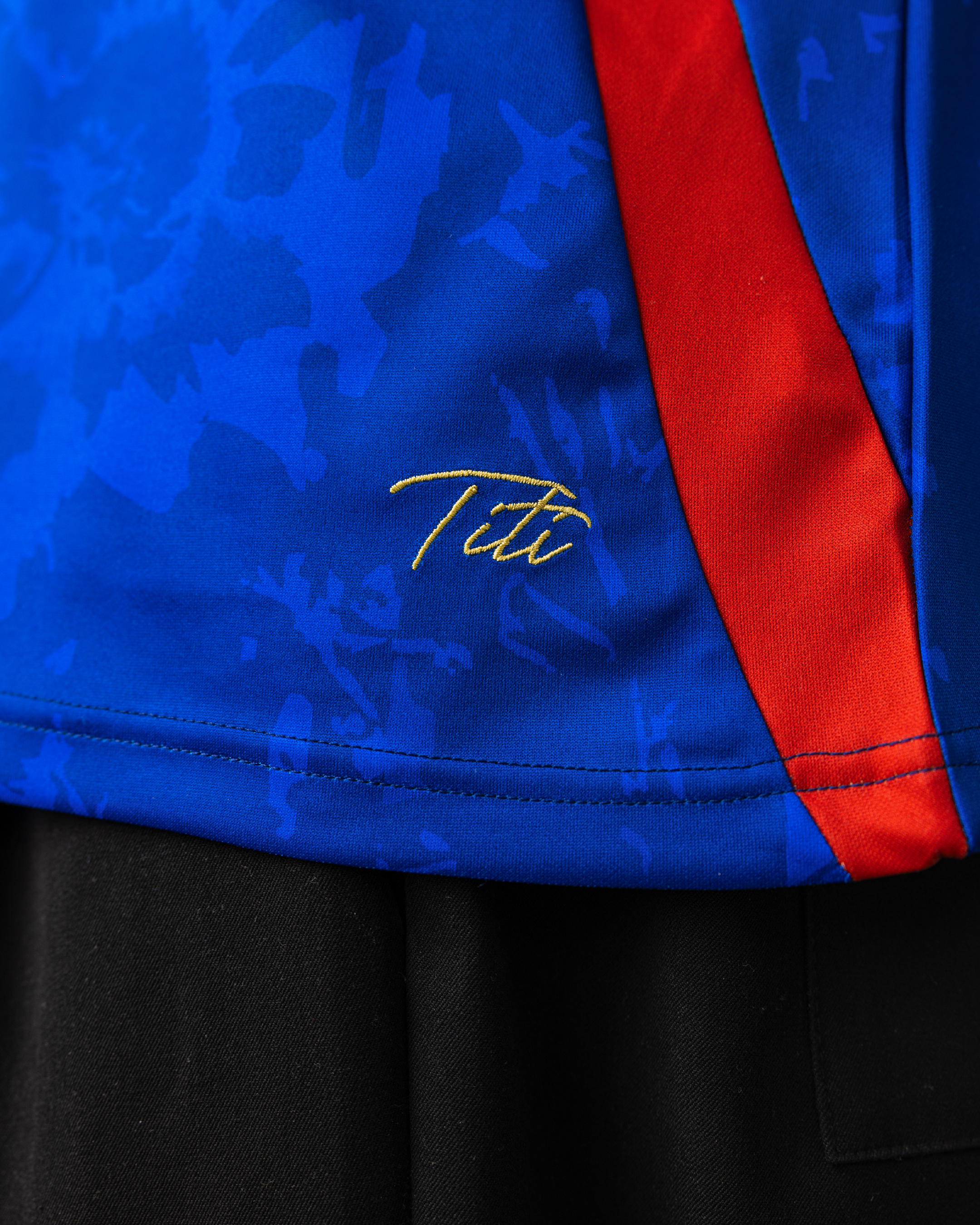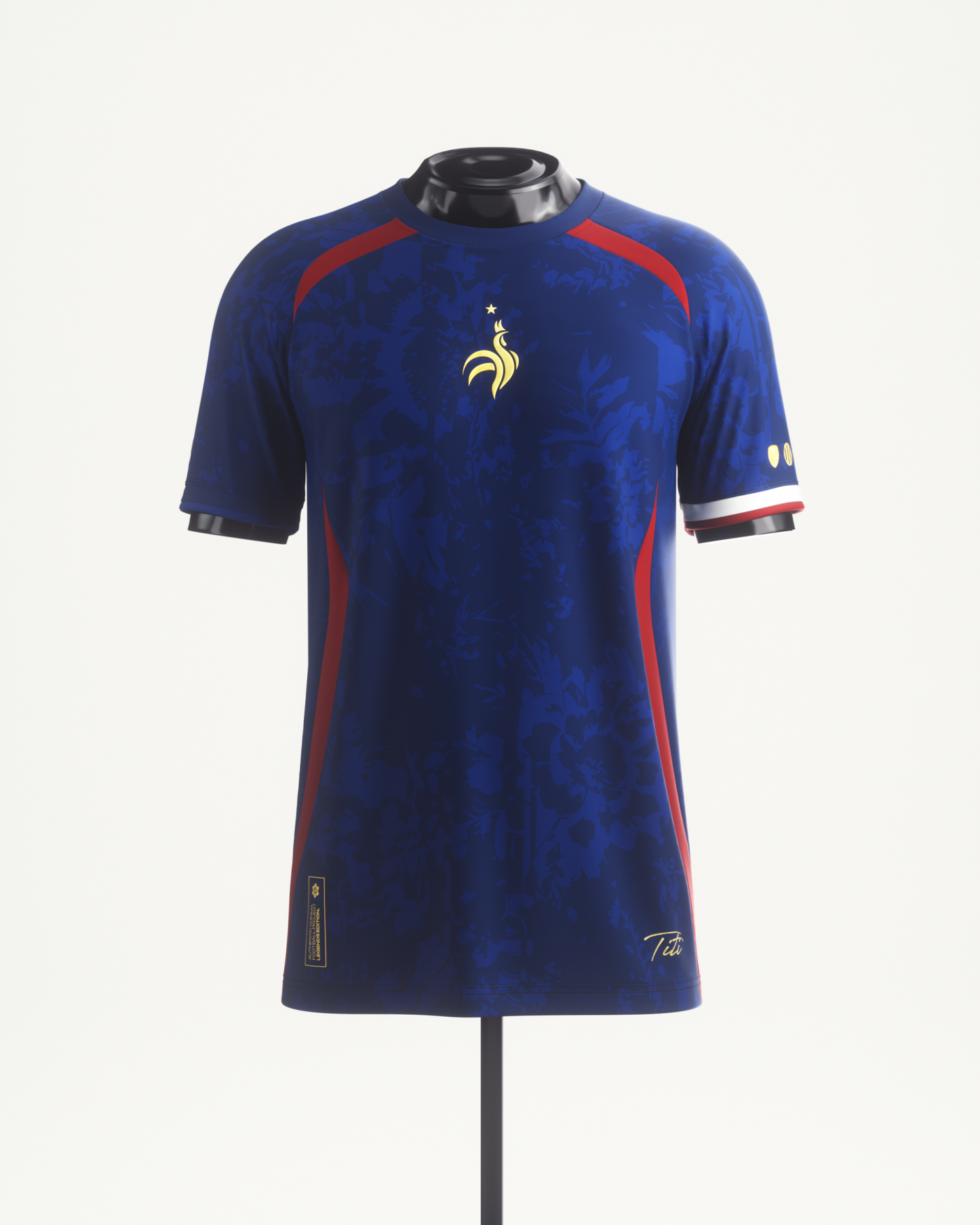 Featuring the crest of France, his club history from Monaco to New York, a captain's armband, a silhouette of his iconic celebration, and a pattern inspired by flowers from France. A jersey that captures the entire career of Titi.