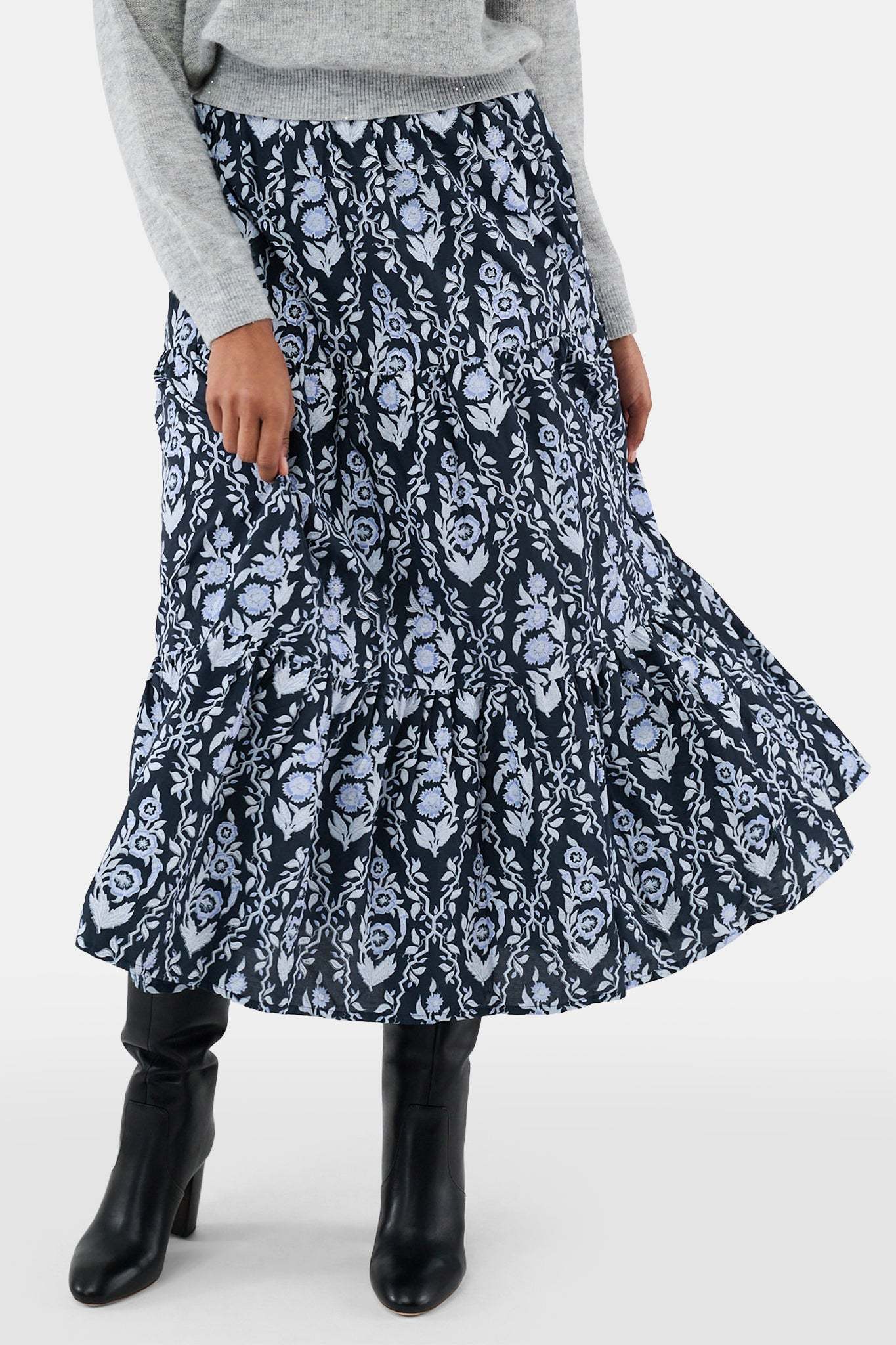 Embrace your inner Stevie Nicks with the Carlisa Skirt. This full-length cotton-silk maxi will swish and sway in the most dramatic, romantic way and looks great with boots, heels, or ballerina flats - perfect for the holiday season!
