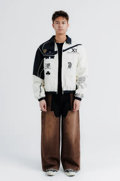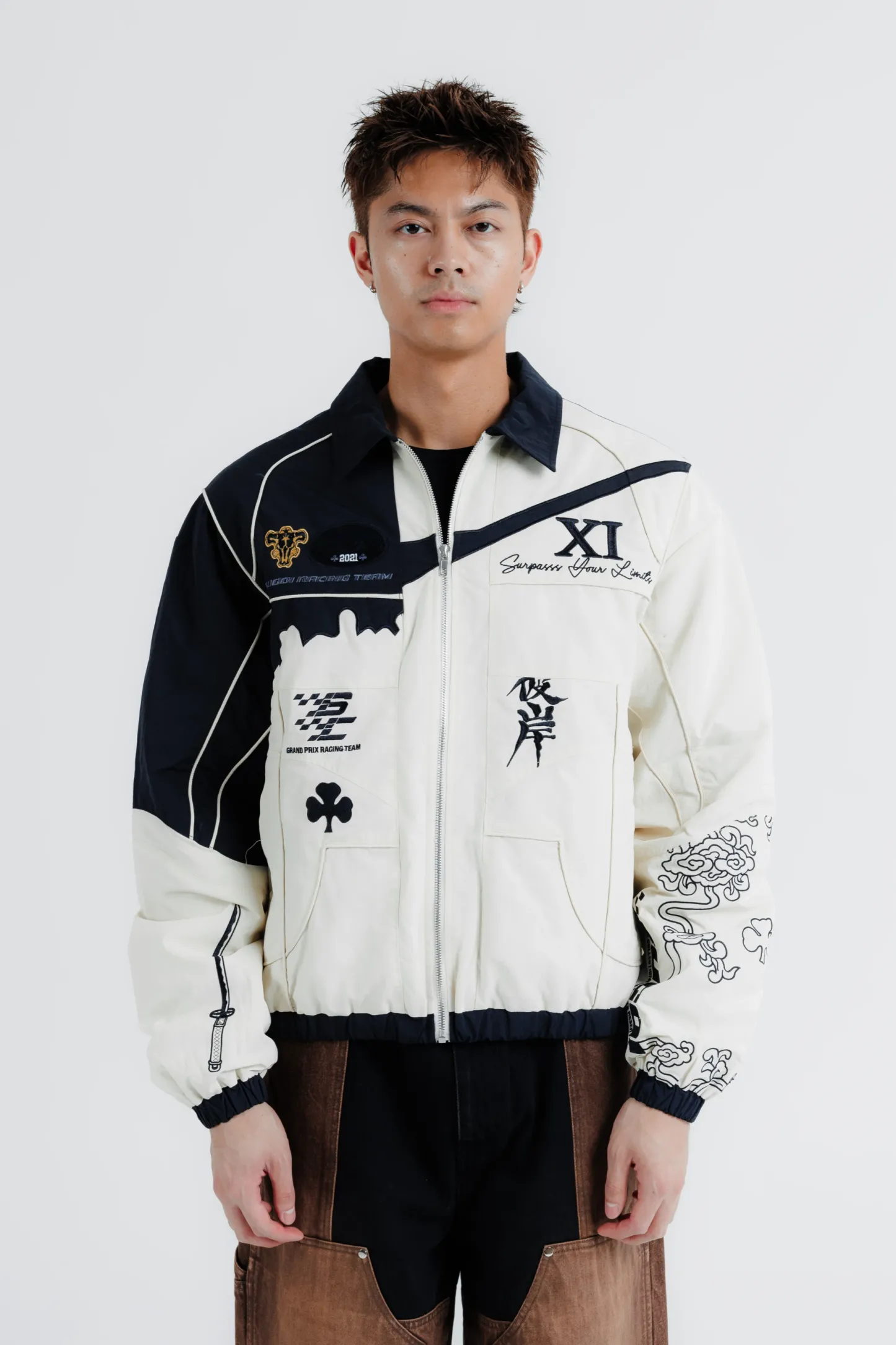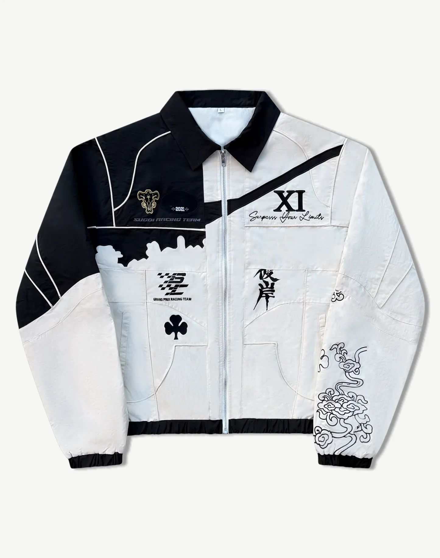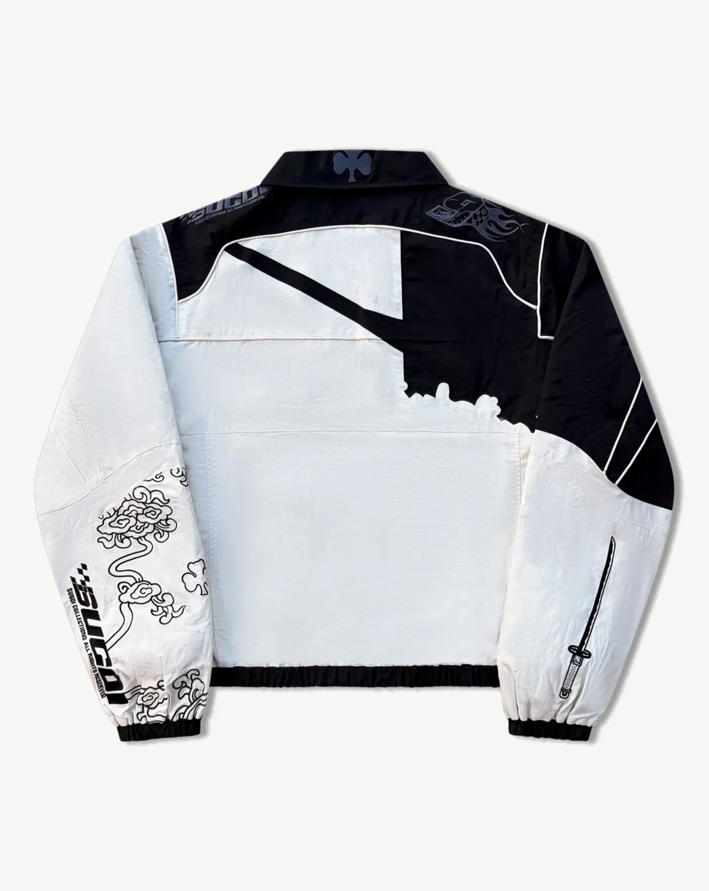 VOID SHROUD RACING JACKET BLENDS RACING HERITAGE PROPORTIONS WITH A SUBDUED BLACKED-OUT AESTHETIC AND PRECISE SEAM WORK.