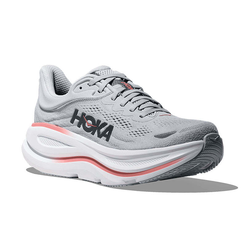 One of the hardest working shoes in the HOKA lineup, the Bondi 9 delivers peak plushness for everyday miles. Overhauled from top to bottom, we??ve increased the stack height and added a new premium foam midsole to deliver that soft, resilient ride that??s become synonymous with the Bondi. Elevated with a 3D molded collar and structured knit upper with zonal breathability, this ultra-cushioned cult favorite has been finished with Durabrasion rubber to combat high wear zones.